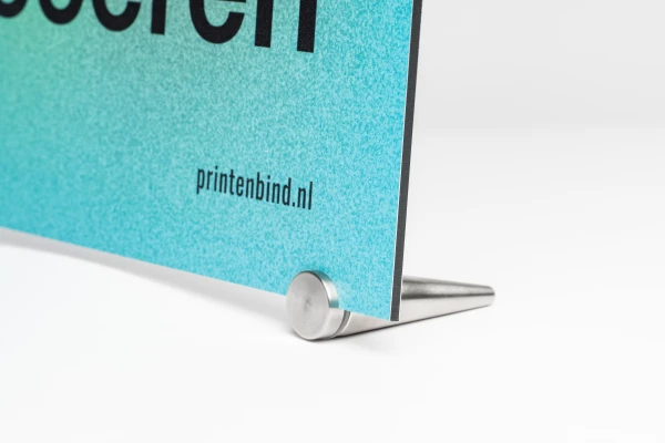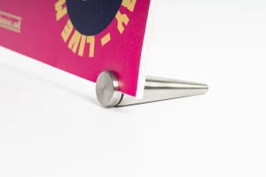 The stainless steel table stand is the perfect way to display your board materials. You can elegantly showcase a photo or display information at a counter. The table stands can be placed anywhere on the board material. Simply detach the front and securely attach the stand in the desired position.