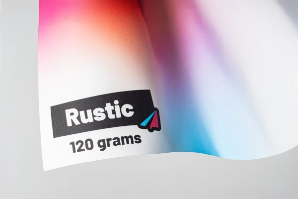 Technical specifications of our Rustic paper type: Rough air white-warmwhite, 120gr, opacity 98%
