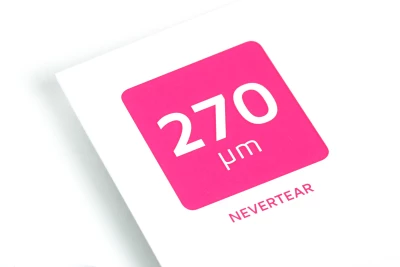 Print&Bind heeft de papiersoort Polyester in de dunne variant (125um) en in de stevigere variant (270um). Deze papiersoort is onscheurbaar en kan tegen water. Daarom is Polyester papier uitermate geschikt voor flyers, menukaarten en posters.