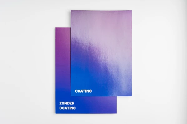 Met onze coating afwerking kan jij jouw ontwerp nét dat beetje extra uitstraling geven. En niet alleen dat, want de coating geeft ook nog eens extra bescherming tegen vlekken en water. Zo ziet je ontwerp er dus niet alleen mooier uit, maar gaat het ook langer mee. Wel zo handig! De coatinglaag is mogelijk op garenloosboekjes, magazines en alle losbladige producten. Dit houdt onder andere in: visitekaartjes, losbladig, kaarten, gevouwen kaarten, flyers, certificaten.