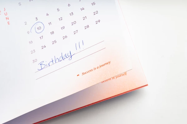 Not sure which options to choose for your birthday calendar? Consider how you’ll use it and your personal preferences. An A4 format is compact and convenient, while an A3 calendar stands out more. Single-sided printing is often sufficient for everyday use, but double-sided printing can save space. If you plan to hang the calendar, sturdy paper like extra strong white or classic warm white is ideal. For a luxury look, consider linen texture or pearl shimmer paper. Prefer a sleek appearance? A transparent front cover offers extra protection, and a calendar hook makes it easy to hang. Try different combinations in the design tool to find what suits you best!