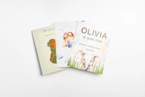 Make the birth of your baby even more special with unique birth announcement cards! At Print&Bind, you can create fully personalized cards that match your style and preferences. Whether you choose a classic or modern design, we ensure high-quality prints on premium paper to leave a lasting impression. Order quickly and easily, and enjoy super-fast delivery. In no time, you'll have beautiful birth announcements ready to send to family and friends!