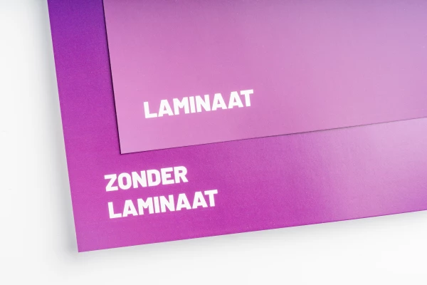 In addition to a glossy top layer, you can also opt for matt laminating of your prints. This matt laminating layer is 125um thick and is placed after printing using our laminating machine. The layer ensures a sleek appearance of your prints.