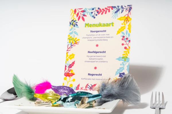 Christmas and New Year's Eve are the perfect moments for a festively laid table full of delicious food and beautiful decorations. And of course a self-designed menu cannot be missing. A menu can be a playful nod to the past year and give a personal touch to your meal. Give the menus a truly luxurious restaurant feel with one of our special types of paper. This will make your evening extra special.