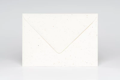 The sand, kraft and ivory envelopes all have a brown/beige colour. Especially sand, terrazzo and kraft have a natural look, which makes these envelopes a good match with the paper types Classic, Old Dutch, Linen and Eco Fibre. These types of paper are less white than regular Card paper, and old Dutch and linen also have a tangible structure. Do you want the most ecologically responsible option? Then choose the combination of Eco Fibre paper with sand envelopes.