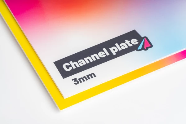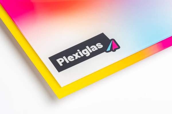 A crystal clear acrylic material that is very suitable for images. The mirror image of the design is printed on the back (the mirroring is done automatically by our software). To prevent any see-through, a white layer is placed behind the print. The material can't be folded.