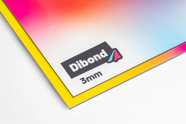 Dibond is a top quality, lightweight aluminum sandwich plate with very high stiffness. These plates are made of a black polyethylene core with a 0.3 mm top layer aluminum on both sides.