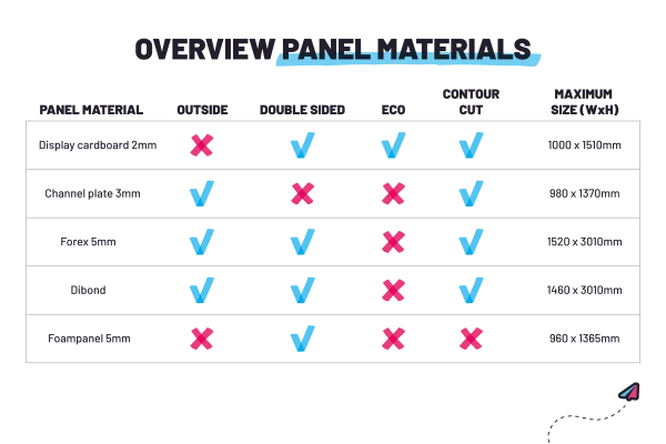 Still in doubt about your choice? The table on the left might help you with your choice. In this table, we have summarized the most important characteristics of our panel materials to get a clear overview. If after checking this table you still are not sure about your choice, then don't hesitate to contact us.