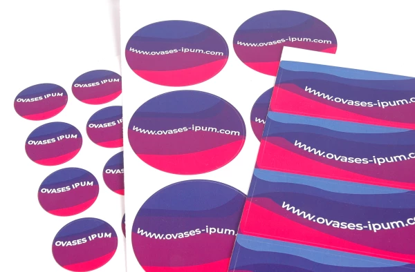 The stickers on paper sheet can be printed in different sizes. Think of round, square, rectangular shapes. We also cut out stickers with a special shape. As a finishing touch, you can give your stickers a glossy finish. These stickers are often used for personal wine bottles. The stickers are not water resistant.