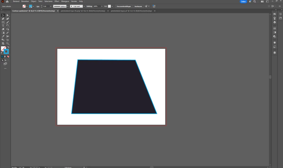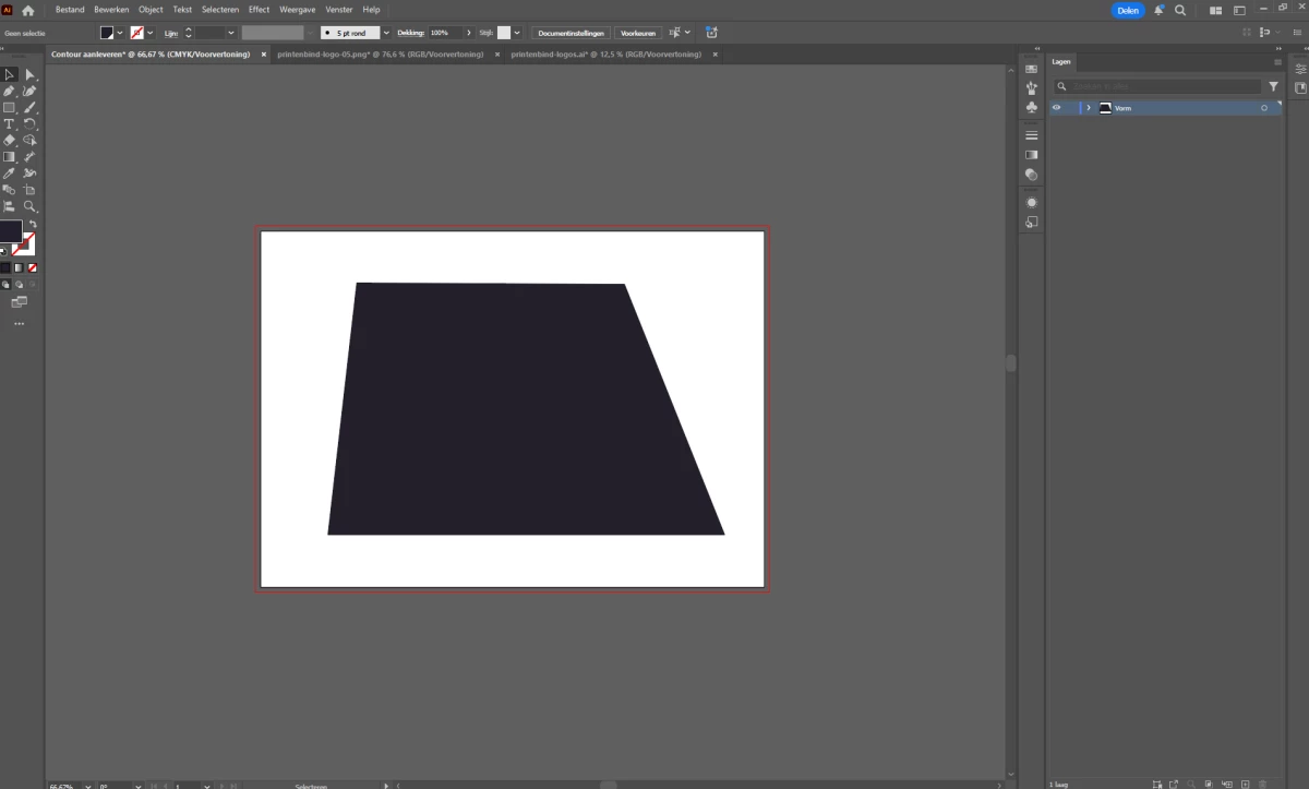 The first step is to open the file containing the shape (object) you want to contour cut in Illustrator. Ensure that the artboard matches the size you want your design to be produced in. This prevents any surprises during the cutting process and ensures everything is cut to the correct size. In our example, we use an A4-sized artboard with a self-designed shape.
