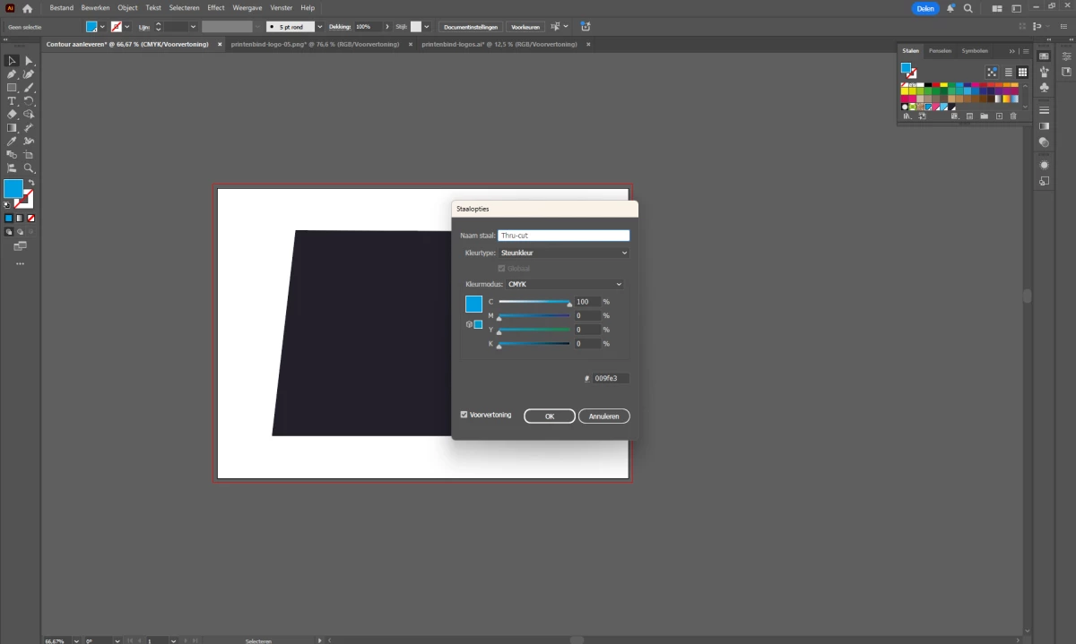 Next, in Illustrator, create a new color swatch and name it "Thru-cut" setting it as a spot color. This step is crucial because it allows the cutting machine to recognize where to make the cuts. Once that’s done, you’re all set to create your contour line and elevate your design to the next level!