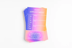 Veel afspraken te plannen met verschillende klanten? Maak een professionele indruk met jouw eigen ontwerp afsprakenkaart! Geef de afsprakenkaarten aan jouw klanten en leg gemakkelijk jullie afspraken vast.