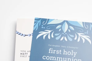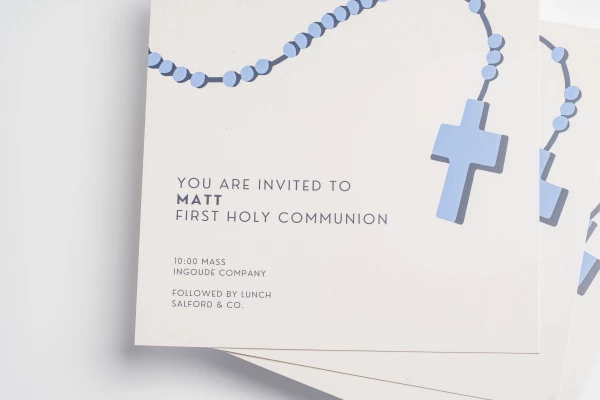 Communiekaarten kan je laten printen op verschillende soorten kwaliteitspapier. Kies naar wens ook voor speciale afwerkingen zoals een glanzende coating of ronde hoeken. Je kunt ook kiezen voor de optie voorbedrukt om te versturen. Zo is je communiekaart direct klaar te versturen.