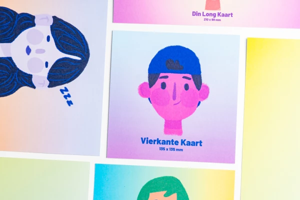 • Bestand indeling: Wil je een gevouwen kaartje bestellen? Lever dan een PDF aan met 4 pagina's: voorkant, binnenkant links, binnenkant rechts en achterkant.