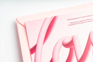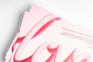 Voor een Valentijnskaart zijn een luxe papiersoort en ronde hoeken de perfecte afwerkingen. Kies bijvoorbeeld voor Oud Hollands papier, dat een klassieke en verfijnde uitstraling geeft. Voeg ronde hoeken toe voor een extra luxe en stralend effect, waardoor je kaart nog meer opvalt. Met deze combinatie krijgt je Valentijnskaart een romantische en hoogwaardige uitstraling.