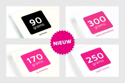 Met trots presenteren wij onze nieuwe papiersoorten! De 4 nieuwe papiersoorten zijn zorgvuldig uitgekozen om tot een optimaal resultaat te komen. De papiersoorten zijn natuurlijk zeer geschikt om mooi op te kunnen printen. Op deze manier is er nog meer keuze om het optimale product te produceren!