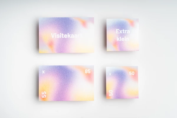 Naast onze standaard visitekaart hebben wij nu ook 50 x 90 mm. Dit is het Amerikaanse visitekaart formaat. Veel ontwerpprogramma's hebben standaard dit formaat. Nu kun je dus direct, zonder enkel probleem ook dit formaat bij ons bestellen.