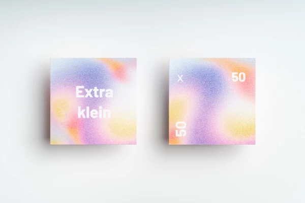 More is less kan natuurlijk ook voorkomen. Wellicht heb jij juist helemaal niet zo'n groot kaartje nodig. Dan hebben we nu speciaal voor jou ons kleinste formaat aangepast naar 50 x 50 mm. En zoals je ziet is dat éxtra klein!