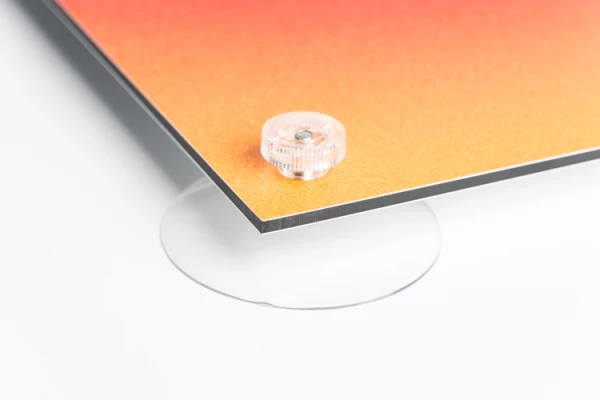 Zuignappen zijn het ideale montage materiaal voor het ophangen van plaatmaterialen op gladde oppervlakken zoals glas of tegels. Soms wil je liever niet boren in een muur, maar is een bord toch erg handig! Zuignappen zijn perfect voor gebruik bij evenementen zoals bruiloften of (tijdelijke) productpresentaties in winkels. Ze kunnen worden gebruikt voor borden tot maximaal 8 mm dikte. De zuignappen zelf zijn transparant en hebben een diameter van 50 mm. We plaatsen de boorgaten zo dat de zuignappen netjes achter het bord wegvallen, en dankzij de transparante kleur vallen ze vanaf de zijkant nauwelijks op.
