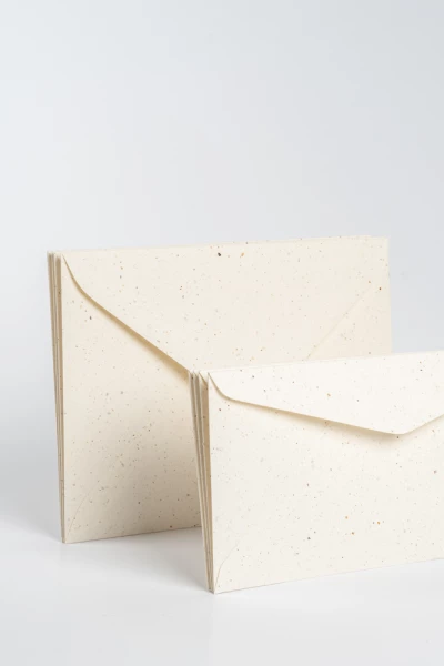 De kaarten zijn stevig, schijnen niet door en zijn allemaal net even anders. Zo heb je altijd een uniek product. Net als al onze andere enveloppen hebben ze een gegomde sluiting. Op die manier plak je ze extra makkelijk vast.