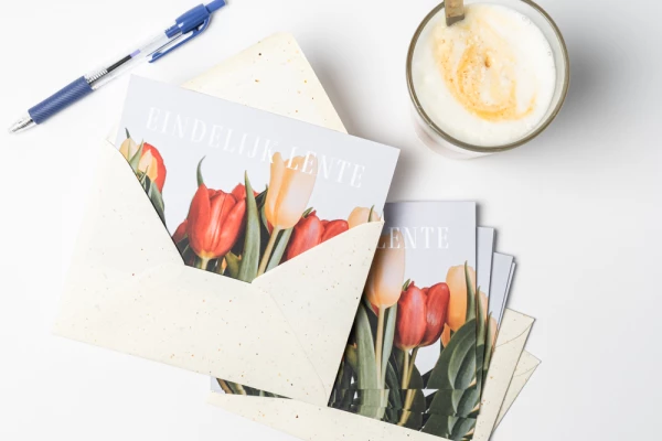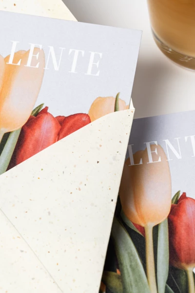 De lente is weer begonnen en daarmee ook het tulpen seizoen! En wat is nou leuker dan dit te vieren met onze Terrazzo enveloppen; gemaakt van tulpenbollen!