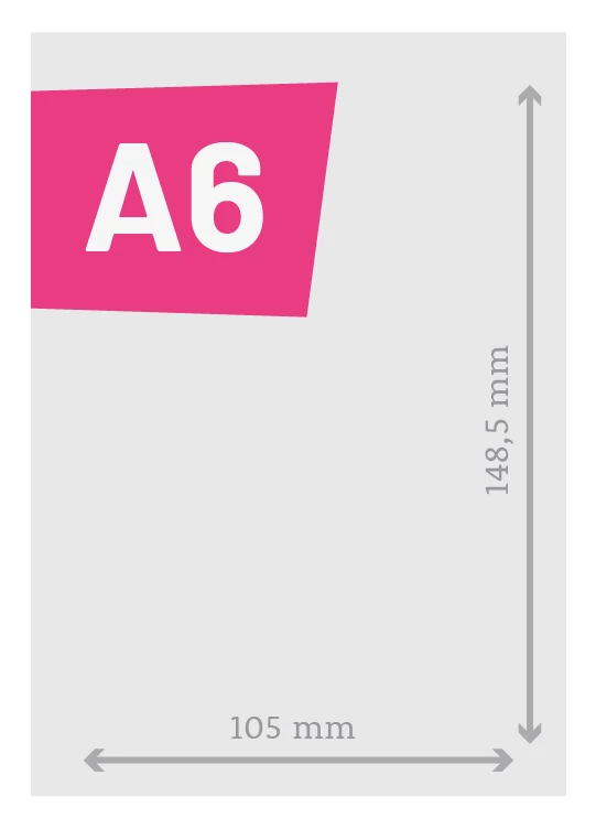 | A6 papier | 105 x 148 mm | 10,5 x 14,8 cm | 4,1 x 5,8 inch |