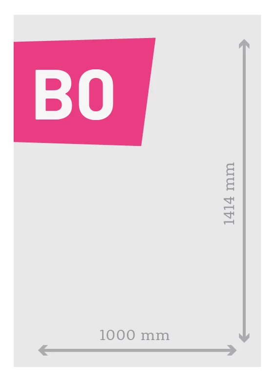 Zie je wel eens een enorme poster onder het viaduct geplakt, in de lobby van het theater of in een showroom achter glas gepresenteerd? Grote kans dat dit een poster is, geprint op B0 papier. Het grote B0-formaat wordt veelal gebruikt wanneer de afstand tot de kijker vrij groot is en het oppervlakte waar deze wordt opgehangen ook.